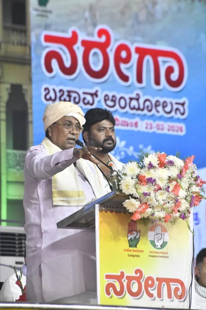 ಚಿಕ್ಕಬಳ್ಳಾಪುರ, ಫೆಬ್ರವರಿ 23:ಗ್ರಾಮೀಣ ಜನರ ಉದ್ಯೋಗದ ಹಕ್ಕನ್ನು ಕಸಿಯುತ್ತಿರುವ ವಿಬಿಜಿರಾಮ್ ಜಿ ಕಾಯ್ದೆಯನ್ನು ರದ್ದುಪಡಿಸಿ, ಮನರೇಗಾ ಮರುಸ್ಥಾಪಿಸುವವರೆಗೆ ದೇಶಾದ್ಯಂತ ಕಾಂಗ್ರೆಸ್ ನಡೆಸುತ್ತಿರುವ ಹೋರಾಟವನ್ನು ಬೆಂಬಲಿಸಬೇಕೆಂದು ರಾಜ್ಯದ ಜನರಿಗೆ ಮುಖ್ಯಮಂತ್ರಿ ಸಿದ್ದರಾಮಯ್ಯ ಕರೆ ನೀಡಿದರು.