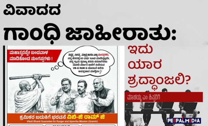 ಗ್ರಾಮೀಣ ಜನರ ಭದ್ರತೆಗೆ ಅಪಾಯವಾಗುವಂತೆ ಉದ್ಯೋಗ ಖಾತ್ರಿಗೆ ತಿದ್ದುಪಡಿ ತಂದು, ಗಾಂಧಿಯ ಹೆಸರನ್ನೂ ಯೋಜನೆಯಿಂದ ಕೈಬಿಟ್ಟ ಕೇಂದ್ರ ಸರ್ಕಾರದ ವಿರುದ್ಧ ಕೆಲ ದಿನಗಳ ಹಿಂದೆ ರಾಜ್ಯ ಸರ್ಕಾರ ಪ್ರಕಟಿಸಿದ್ದ ಜಾಹೀರಾತಿಗೆ ಪ್ರತಿಯಾಗಿ ಬಿಜೆಪಿ ಇದನ್ನು ಪ್ರಕಟಿಸಿದೆ ಎಂದು ಕೆಲವರು ವಾದಿಸುತ್ತಾರೆ. ಇವೆರಡೂ ಜಾಹೀರಾತುಗಳನ್ನು ಪರಸ್ಪರ ತುಲನೆ ಮಾಡಿ ನೋಡಿದರೆ, ಆ ಎರಡೂ ಸಿದ್ದಾಂತಗಳ ನಡುವಿನ ವ್ಯತ್ಯಾಸ ನಮಗೆ ಸ್ಪಷ್ಟವಾಗಿ ಗೋಚರಿಸುತ್ತದೆ. ರಾಜ್ಯ ಸರ್ಕಾರ ನೀಡಿದ್ದ ಜಾಹೀರಾತಿನಲ್ಲಿ ಮಹಾತ್ಮ ಗಾಂಧಿ ಒಬ್ಬ ವ್ಯಕ್ತಿಯ ಜೊತೆ ಸಂವಾದಿಸುತ್ತಿರುವ ಸರಣಿ ಚಿತ್ರ ರೂಪಣೆಗಳಿದ್ದವು. ಬಿಜೆಪಿ ಪ್ರಕಟಿಸಿರುವ ಜಾಹೀರಾತಿನಲ್ಲಿ ಮಹಾತ್ಮ ಗಾಂಧಿ ತನ್ನ ದೊಣ್ಣೆಯೆತ್ತಿ ಸಿದ್ದರಾಮಯ್ಯ, ರಾಹುಲ್‌ ಗಾಂಧಿ, ಮಲ್ಲಿಕಾರ್ಜುನ ಖರ್ಗೆ ರೂಪವನ್ನು ಹೋಲುವವರಿಗೆ ಹೊಡೆಯುತ್ತಿರುವಂತೆ ಚಿತ್ರಿಸಲಾಗಿದೆ. ರಾಜ್ಯ ಸರ್ಕಾರದ ಜಾಹೀರಾತಿನಲ್ಲಿ ತನ್ನ ವಿರೋಧಿಯ ಜೊತೆಗೂ ಸಂವಾದ ನಡೆಸುವ ವಿಶಾಲತೆ ನಮಗೆ ಗೋಚರವಾಗುತ್ತದೆ. ಆ ಸಂವಾದವೇ ನಿಜವಾದ ಗಾಂಧಿತತ್ವ. ಇನ್ನು ಬಿಜೆಪಿ ನೀಡಿರುವ ಜಾಹೀರಾತಿನಲ್ಲಿ ಮಹಾತ್ಮ ಗಾಂಧಿ ತಮ್ಮ ತತ್ವಸಿದ್ದಾಂತಿಗಳ ಮೇಲೆಯೇ ಹಲ್ಲೆ ಮಾಡುತ್ತಿದ್ದಾರೆ. ಇಲ್ಲಿ ಹಿಂಸೆ ವಿಜೃಂಭಿಸುತ್ತಿದೆ. ಸಂವಾದಕ್ಕೆ ಆಸ್ಪದವಿಲ್ಲ. ಇದು ನಿಜವಾದ ಗೋಡ್ಸೆವಾದ!