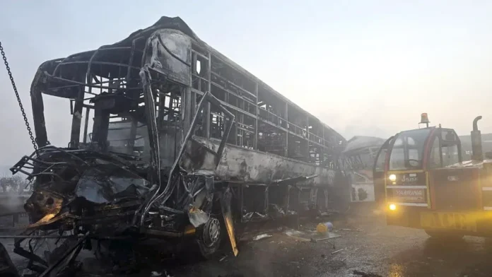 ಮುಂಜಾನೆ ಸುಮಾರು 3:30 ಕ್ಕೆ ಸಂಭವಿಸಿದ ಈ ಅಪಘಾತದಲ್ಲಿ ಏಳು ಬಸ್‌ಗಳು ಮತ್ತು ಎರಡು ಕಾರುಗಳು ಭಾಗಿಯಾಗಿದ್ದವು. ಡಿಕ್ಕಿಯ ನಂತರ ವಾಹನಗಳಲ್ಲಿ ಬೆಂಕಿ ಹೊತ್ತಿಕೊಂಡಿದ್ದರಿಂದ ಜನರು ಒಳಗೆ ಸಿಲುಕಿಕೊಂಡರು ಮತ್ತು ಬಸ್‌ಗಳಲ್ಲಿದ್ದ ಕೆಲವು ಪ್ರಯಾಣಿಕರು ಬೆಂಕಿಗೆ ಆಹುತಿಯಾಗಿ ಸಜೀವ ದಹನವಾಗಿದ್ದಾರೆ.