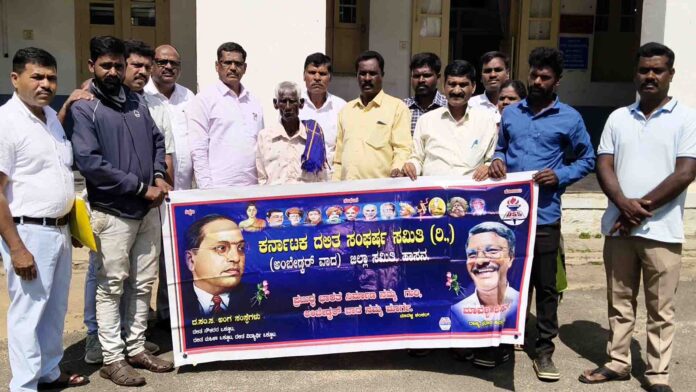 ಆರ್‌ಎಸ್‌ಎಸ್ ಕುತಂತ್ರ ಖಂಡಿಸಿ ಡಿ.ಎಸ್.ಎಸ್‌ ಪ್ರತಿಭಟನೆ ಮನವಿ