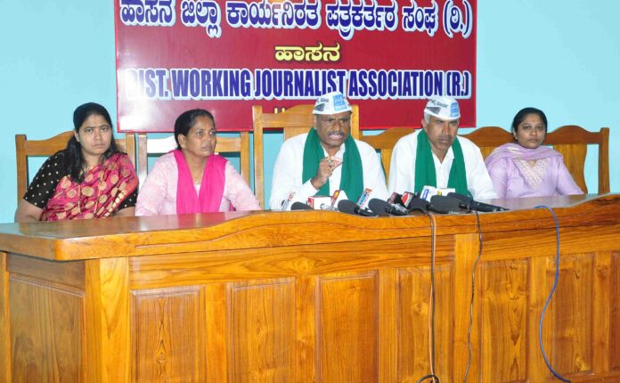 ಹಾಸನ : ಪ್ರಸಿದ್ಧ ಹಾಸನಾಂಬ ದೇವಿಯ ಜಾತ್ರಾ ಮಹೋತ್ಸವದ ಹಿನ್ನೆಲೆ ಸ್ಥಳೀಯ ಭಕ್ತರ ಪರ ಹೋರಾಟ ತೀವ್ರಗೊಂಡಿದೆ. ಸ್ಥಳೀಯರಿಗೆ ವಿಶೇಷ ದರ್ಶನ ವ್ಯವಸ್ಥೆ ಕಲ್ಪಿಸದಿದ್ದರೆ ದೇವಾಲಯದ ಬಾಗಿಲು ತೆರೆಯುವ ದಿನ ದೇವಾಲಯಕ್ಕೆ ಆಗಮಿಸುವ ಸಚಿವರಿಗೆ ಕಪ್ಪು ಬಾವುಟ ಪ್ರದರ್ಶನ ಮಾಡುವುದಾಗಿ ಆಮ್ ಆದ್ಮಿ ಪಾರ್ಟಿ ಜಿಲ್ಲಾ ಅಧ್ಯಕ್ಷ ಅಗಿಲೆ ಯೋಗೀಶ್ ಎಚ್ಚರಿಸಿದ್ದಾರೆ.