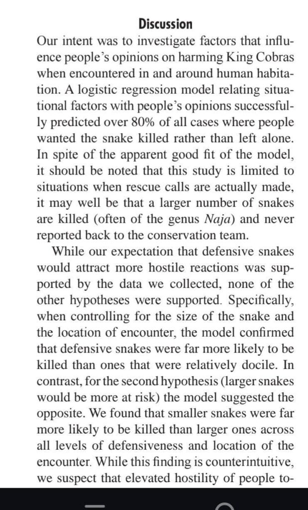 ಕಾಳಿಂಗ ನೋಡಲು ದೈತ್ಯಾಕಾರವಾಗಿದ್ದರೂ ಅದು ಮನುಷ್ಯರಿಗೆ ಸಹಜವಾಗಿ ಕಚ್ಚಿ ಜನ ಸತ್ತ ಉದಾಹರಣೆ ಇಲ್ಲವೇ ಇಲ್ಲ. ದಟ್ಟ ಕಾಡುಗಳಲ್ಲಿ ಓಡಾಡಿಕೊಂಡಿದ್ದ ಈ ನಿರುಪದ್ರವಿ ಉರಗಗಳು ಕಚ್ಚುವುದು ಹಾಗಿರಲಿ, ತೀರಾ ಇತ್ತೀಚಿನವರೆಗೂ ಮನುಷ್ಯರ ಕಣ್ಣಿಗೆ ಕಾಣಿಸಿಕೊಳ್ಳುತ್ತಿದ್ದಿದ್ದೇ ವಿರಳ. ನಾಚಿಕೆ ಸ್ವಭಾವದ ಹಾವುಗಳಾದ ಕಾಳಿಂಗಗಳೊಂದಿಗೆ ಮನುಷ್ಯರದು ಸಹಜೀವನ. ಹೀಗಾಗಿ ಮಲೆನಾಡಿನಲ್ಲಿ ಮಾನವ-ಕಾಳಿಂಗ ಸಂಘರ್ಷವೆಂಬುದು ಇಲ್ಲವೇ ಇಲ್ಲ. ಹಾಗೆ ಇದೇ ಎಂಬುದೇ ಸಂಶೋಧಕರ ಸೃಷ್ಟಿ ಹಾಗೂ ಅದೇ ಅವರ ಚಟುವಟಿಕೆಗಳಿಗೆ ಮೂಲ ಬಂಡವಾಳ.