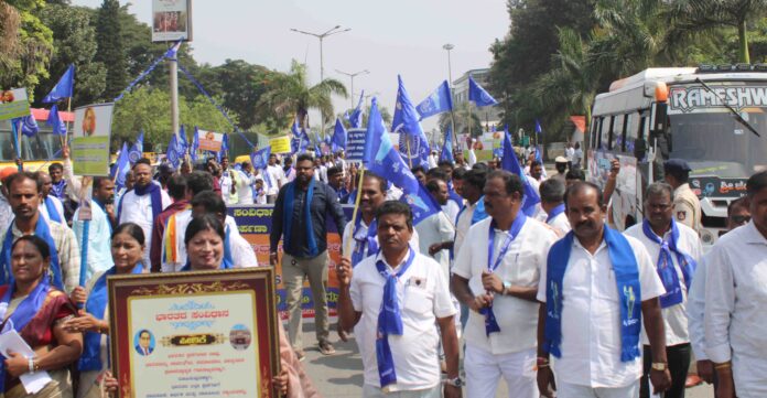 ಹಾಸನ : RSS ವಿರುದ್ಧ ದಲಿತ-ಪ್ರಗತಿಪರ ಸಂಘಟನೆಗಳಿಂದ ಬೃಹತ್‌ ಪ್ರತಿಭಟನೆ