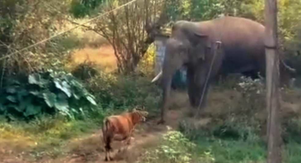 ಬೇಲೂರು : ಕಾಡಾನೆ ಭೀಮನ ಸೌಮ್ಯತೆ ನೋಡಿ!.. ದಾರಿಯಲ್ಲಿ ಎದುರಿಗೆ ನಿಂತಿದ್ದ ಹಸುವನ್ನು ಕಂಡು ಮೌನವಾದ ಭೀಮ! ಹಸು ದಾಟಿದ ಮೇಲೆ ಮುಂದೆ ಸಾಗಿದ ಭೀಮ! ಮೊಬೈಲ್ ನಲ್ಲಿ ಸೆರೆಯಾದ ದೃಶ್ಯ ಇದೀಗ ಎಲ್ಲೆಡೆ ವೈರಲ್! ಬೇಲೂರು ತಾಲೂಕಿನ ಮತ್ತಾವರ ಗ್ರಾಮದಲ್ಲಿ ಕಂಡು ಬಂದ ದೃಶ್ಯ!
