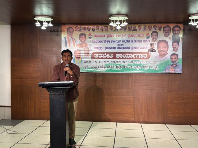 ಹುಬ್ಬಳ್ಳಿ ಧಾರವಾಡ ಜಿಲ್ಲಾ ಕಾಂಗ್ರೆಸ್ ಆಯೋಜಿಸಿದ್ದ ಕಾರ್ಯಾಗಾರದಲ್ಲಿ ಅತಿಥಿಗಳಾಗಿ ಮಾತನಾಡಿದ ಸುಧೀರ್ ಕುಮಾರ್ ಮುರೋಳ್ಳಿಯವರು ಕೇಂದ್ರ ಸರ್ಕಾರದ ಜನವಿರೋಧಿ ನೀತಿಗಳ ಬಗ್ಗೆ ಮಾತನಾಡಿದರು.