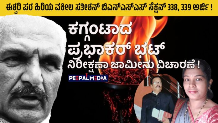 ಈಶ್ವರಿ ಪರ ಹಿರಿಯ ವಕೀಲ ಸತೀಶನ್ ಬಿಎನ್‌ಎಸ್‌ಎಸ್‌ ಸೆಕ್ಷನ್ 338, 339 ಅರ್ಜಿ! ಕಗ್ಗಂಟಾದ ಪ್ರಭಾಕರ್ ಭಟ್ ನಿರೀಕ್ಷಣಾ ಜಾಮೀನು ವಿಚಾರಣೆ!