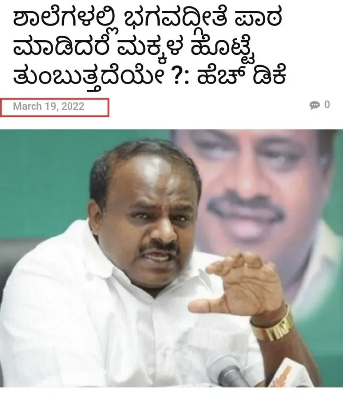 ಹಿಂದೂವಾದಿ HDK Vs ಸೆಕ್ಯುಲರ್ HDK | ಭಗವದ್ಗೀತೆ ಬೋಧಿಸಿದರೆ ಹೊಟ್ಟೆ ತುಂಬುತ್ತದೆಯೇ? ಸಚಿವ ಕುಮಾರಸ್ವಾಮಿಯವರ ಹಳೆಯ ಹೇಳಿಕೆ ಮತ್ತೆ ವೈರಲ್‌