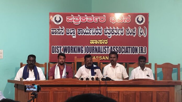 ಹಾಸನ : ಆಲೂರು ತಾಲ್ಲೂಕಿನ ಕಸಬಾ ಹೋಬಳಿಯ ಮರಸುಹೊಸಹಳ್ಳಿ ಗ್ರಾಮದಲ್ಲಿ ಕಾಲದಿಂದ ಹಾಸನದಲ್ಲಿ ವಾಸಿಸುತ್ತಿರುವ ದಲಿತ ಕುಟುಂಬಗಳನ್ನು ಒಕ್ಕಲೆಬ್ಬಿಸಲು ಅಧಿಕಾರಿಗಳು ನಿರಂತರ ಕಿರುಕುಳ ನೀಡುತ್ತಿದ್ದಾರೆ ಎಂದು ಜೈ ಭೀಮ್ ಕ್ರಾಂತಿ ಸೇನೆಯ ಜಿಲ್ಲಾಧ್ಯಕ್ಷ ಬೆಳಗೋಡು ಬಸವರಾಜು ಆರೋಪಿಸಿದರು. ಬುಧವಾರ ನಡೆದ ಸುದ್ದಿಗೋಷ್ಠಿಯಲ್ಲಿ ಮಾತನಾಡಿದ ಅವರು, ಮರಸುಹೊಸಹಳ್ಳಿ ಗ್ರಾಮದ ಸರ್ವೆ ನಂ.34ರಲ್ಲಿ 13 ಗುಂಟೆ 17 ಗುಂಟೆ ಜಮೀನಿದ್ದು, ಅದರಲ್ಲಿ ಸುಮಾರು 60 ವರ್ಷಗಳಿಂದ ಹತ್ತಕ್ಕೂ ಹೆಚ್ಚು ದಲಿತ ಕುಟುಂಬಗಳು ತಲಾ ಐದು ವಿಸ್ತೀರ್ಣದಲ್ಲಿ ವಾಸವಿದ್ದು, ಜನತಾ ಆಶ್ರಯ ಯೋಜನೆ ಹಾಗೂ ಲ್ಯಾಂಡ್ ಆರ್ಮಿ ಮೂಲಕ ಮನೆಗಳನ್ನು ನಿರ್ಮಿಸಿಕೊಂಡು ತಲಾ 20 ಗುಂಟೆ ಜಾಗದಲ್ಲಿ ಸಾಗುವಳಿ ಮಾಡಿಕೊಂಡು ಜೀವನ ನಡೆಸುತ್ತಿದ್ದಾರೆ. ಒಟ್ಟು 30ಕ್ಕೂ ಹೆಚ್ಚು ಕುಟುಂಬಗಳು ಆ ಪ್ರದೇಶದ ವಾಸ ಎಂದು ವಿವರಿಸಿದರು.